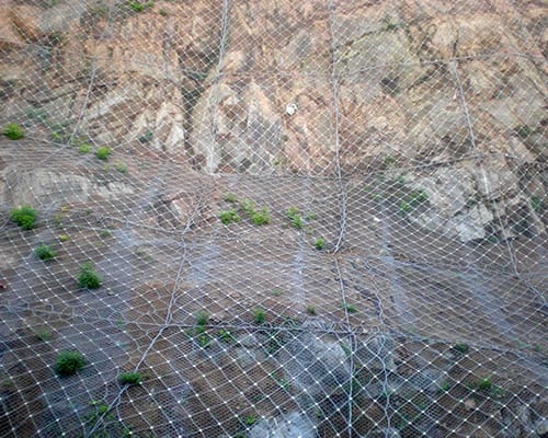 邊坡防護(hù)網(wǎng)主要要通過(guò)系統(tǒng)作用把防止落石滑落或者把落石控制在一定范圍內(nèi),
