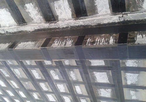 6、防護(hù)保護(hù)。加固后的纖維布表面應(yīng)采取抹灰或噴防火涂料入行保護(hù)。
