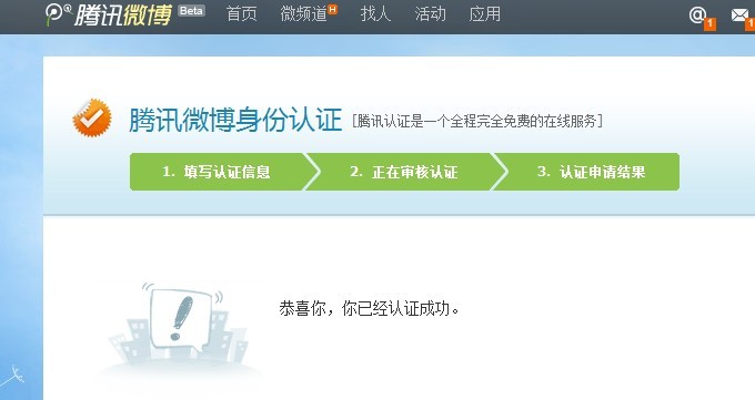 騰訊微博企業(yè)認(rèn)證申請成功!