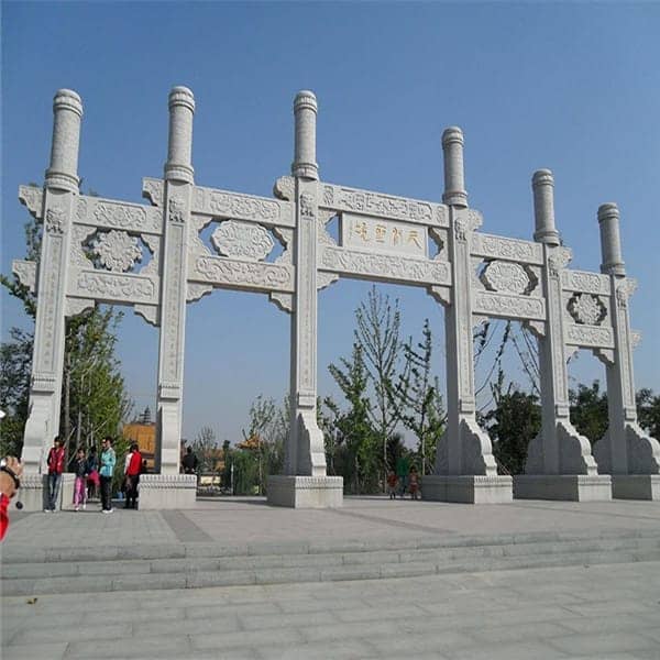 園林景區(qū)進(jìn)口石牌坊也鳴園林景看門樓,也是園林景看牌樓的一種,是我們中國傳統(tǒng)的具有特色的一種門形建筑物,一般比較高大,但是占地面積小,被應(yīng)用在很多景區(qū)、村口、言殿、寺廟、陵墓、街道、古鎮(zhèn)等進(jìn)口,造型獨(dú)特,雕工精湛,結(jié)合精美的圖案和別致的造型,獲得人們的喜歡。就如一座藝術(shù)品,拔地而起,氣魄恢宏,引人注目。
