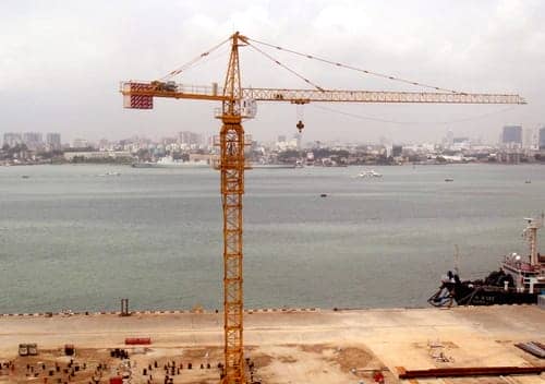二、下旋轉(zhuǎn)式塔吊起重機:歸轉(zhuǎn)支承裝在底座與轉(zhuǎn)臺之間,除行走機構外,其他工作機構都布置在轉(zhuǎn)臺上一起歸轉(zhuǎn)。除軌道式外,還有以履帶底盤和輪胎底盤為行走裝置的履帶式和輪胎式。它整機重心低,能整體拆裝和轉(zhuǎn)移,輕便靈活,應用廣泛,宜用于多層建筑施工。