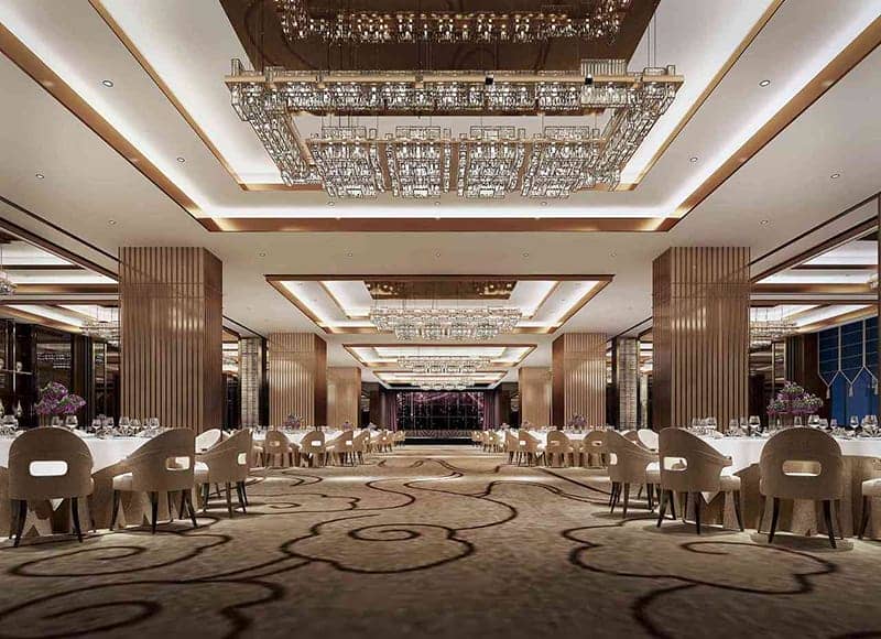 宴會(huì)廳燈光裝飾設(shè)計(jì):由于宴會(huì)廳是一個(gè)大型聚會(huì)場(chǎng)所,通常配有舞臺(tái),所以相應(yīng)的燈光裝飾設(shè)計(jì)比較復(fù)雜。對(duì)于舞臺(tái)區(qū)域,可以設(shè)置舞臺(tái)搖頭燈,LED RAR燈和追光燈。一般照度為105-750。照明方法應(yīng)體現(xiàn)多樣性,并適應(yīng)調(diào)光器和分流開(kāi)關(guān)以滿(mǎn)意不同功能的需求。大廳裝飾有裝飾燈,可以用天花板燈和壁燈裝飾。由于宴會(huì)廳的特別功能,補(bǔ)充僅限用餐,以及會(huì)議和慶典,因此經(jīng)過(guò)翻修的宴會(huì)廳的燈光可能會(huì)輕微更亮。一般來(lái)說(shuō),不同主題的宴會(huì)廳的裝修設(shè)計(jì)對(duì)氣氛有不同的要求。宴會(huì)廳氣氛中有許多裝修元素。這些裝修設(shè)計(jì)元素直接影響宴會(huì)廳對(duì)顧客的吸引力。